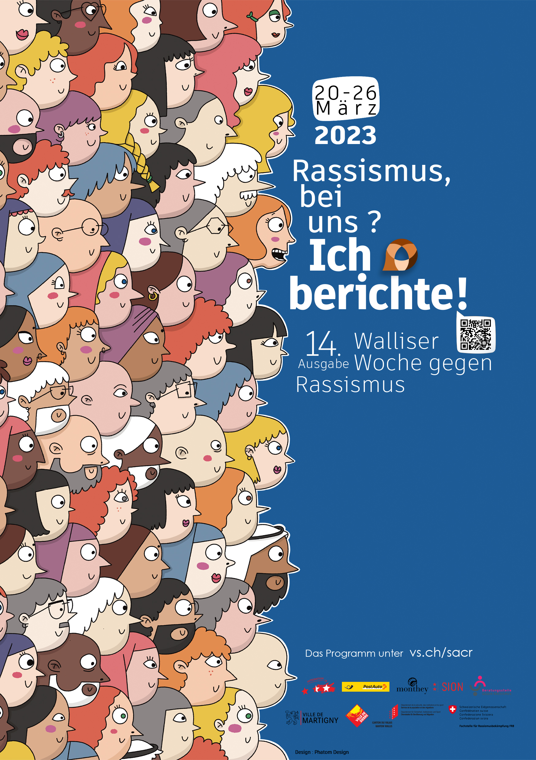 Campagne d’affichage et de distribution des flyers. Sensibilisation du public aux discriminations. Partenariat avec les associations locales de Martigny, micro-trottoirs. Accès libre et gratuit, stands de café sur la place centrale
