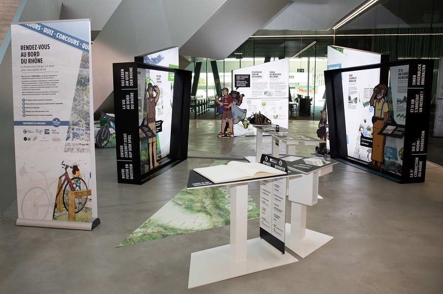 Die Dienststelle Naturgefahren (DNAGE) präsentiert die Wanderausstellung «Treffpunkt Rhoneufer», die sich an die Schulen der Sekundarstufe II im Kanton richtet. Sie zeigt die Rolle auf, die der Fluss und seine Ufer spielen können, um die Anpassungsfähigkeit des Walliser Territoriums an künftige Herausforderungen, insbesondere den Klimawandel, zu verbessern, aber auch um die Lebensqualität der Bevölkerung zu erhöhen. Mit der 3. Rhonekorrektion wird in der Ebene eine neue Landschaft entstehen, die durch öffentliche Räume und Routen für den Langsamverkehr aufgewertet wird. Die Rhone wird nicht mehr nur das Rückgrat des Gewässernetzes des Tals sein. Der Fluss und seine Ufer werden zu einem wichtigeren Korridor für die Biodiversität sowie zu einem attraktiveren Freizeit- und Erholungsraum, unter gleichzeitiger Berücksichtigung der Bedeutung der Erhaltung der Landwirtschaftsflächen.