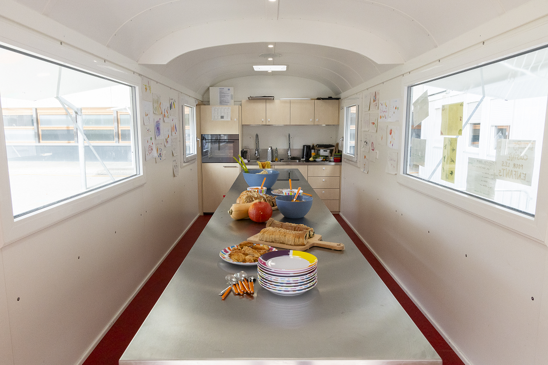 Das erste Slow Mobil ist bereits seit einigen Jahren in der Deutschschweiz unterwegs. Ab sofort hat die Westschweiz ihren eigenen Wagen, der im Wallis eingeweiht wurde. Die Umsetzung wurde durch die Stiftung «Les enfants d’abord» mit Sitz in Lens und die Agenda 2030 für nachhaltige Entwicklung des Staats Wallis mit einem Beitrag in der Höhe von 96‘932 Franken unterstützt. Dieser Betrag deckt zum Teil die Anschaffung und den Umbau des Bauwagens in einen kulinarischen Raum. Er garantiert ausserdem, dass das Slow Mobil den Walliser Schulen während drei Jahren zur Verfügung steht.