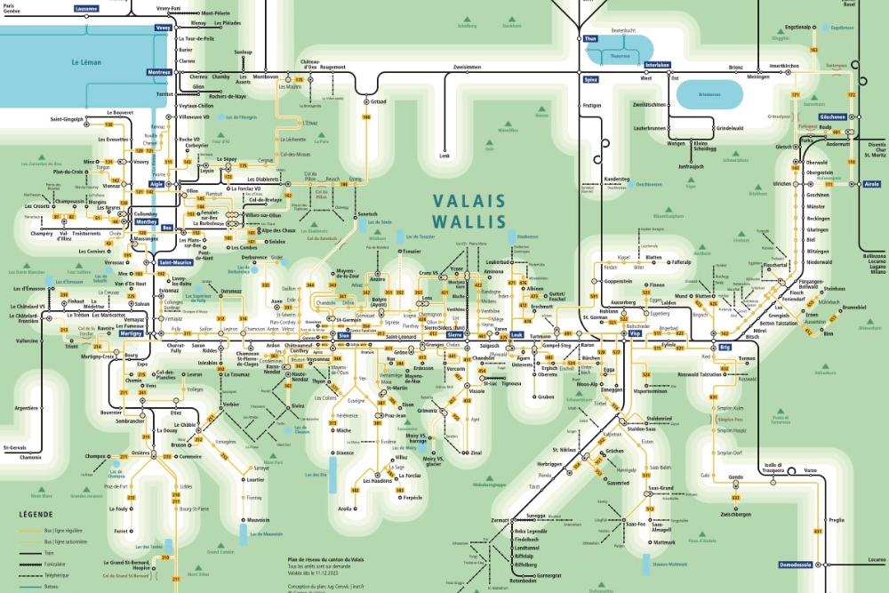 Die Benutzer des öffentlichen Verkehrs des Kantons werden ab dem 10. Dezember 2023 von einem erweiterten Angebot profitieren, mit der Einführung von zwei zusätzlichen Verbindungen zwischen Brig und Bern von Dienstag bis Sonntag, mit der Verlängerung des Halbstundentakts des RER Valais-Wallis samstags zwischen Brig und Monthey und mit einer verbesserten Erschliessung auf mehreren Regionalbuslinien. Der Pass 13* wird weitergeführt, und die Benutzer werden künftig über eine Übersichtskarte des öffentlichen Verkehrs im Wallis verfügen. Der Fahrplan 2024 ist an den üblichen Orten im Internet verfügbar.