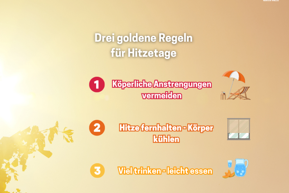 Website der Dienstelle für Gesundheitswesen (Umgang mit der Hitze) https://www.vs.ch/gesunder-lebensstil