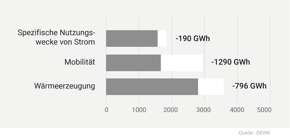 Zwischen 2000 und 2019 ist der Endenergieverbrauch pro Einwohner um 14 % gesunken. Um die Ziele für 2035 zu erreichen, muss er um weitere 33 % sinken. Der Stromverbrauch pro Einwohner wiederum ist zwischen 2000 und 2019 um 7 % gesunken. Um die Ziele für 2035 zu erreichen, muss er um weitere 6 % sinken, was aufgrund der Elektrifizierung der Gesellschaft eine Herausforderung darstellt. Um den Verbrauch fossiler Energien zu reduzieren, erfordert die Energiewende namentlich mehr elektrische Energie, um die zunehmende Zahl an Wärmepumpen und Fahrzeugen versorgen zu können. Nettostromeinsparungen müssen im Bereich der spezifischen Nutzanwendungen von Strom sowie bei der Wärmeerzeugung erzielt werden. Der Energieverbrauch nach Verwendungszweck zwischen 2019 und 2035 (ohne Grossindustrie) könnte sich wie folgt entwickeln: