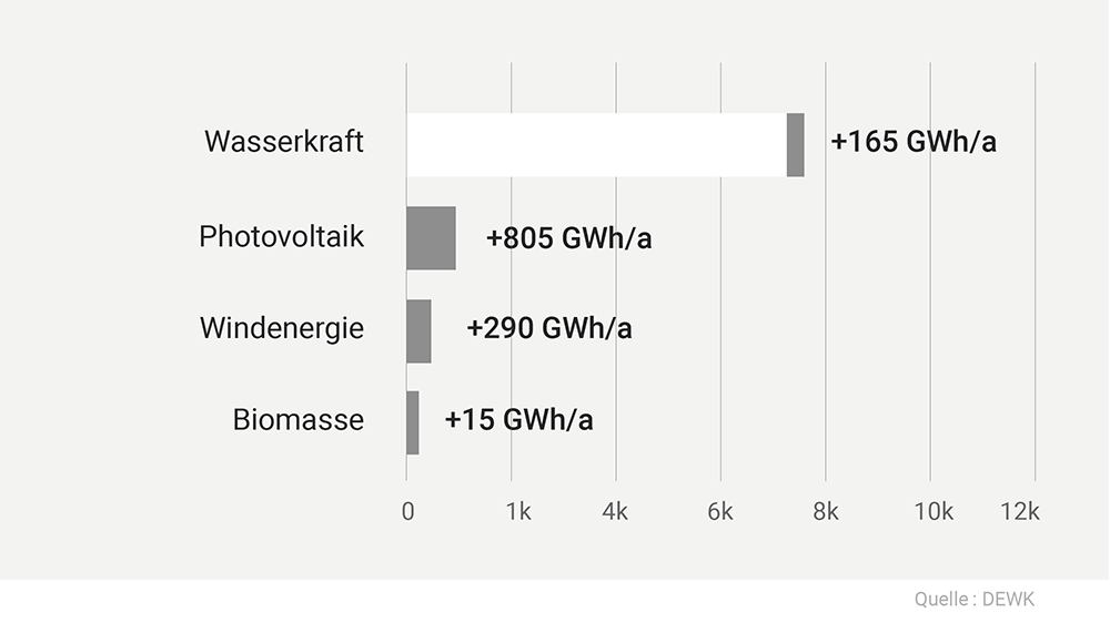 Die Produktion einheimischer und erneuerbarer Energie sollte stark zunehmen, auch im Bereich der Wasserkraft.