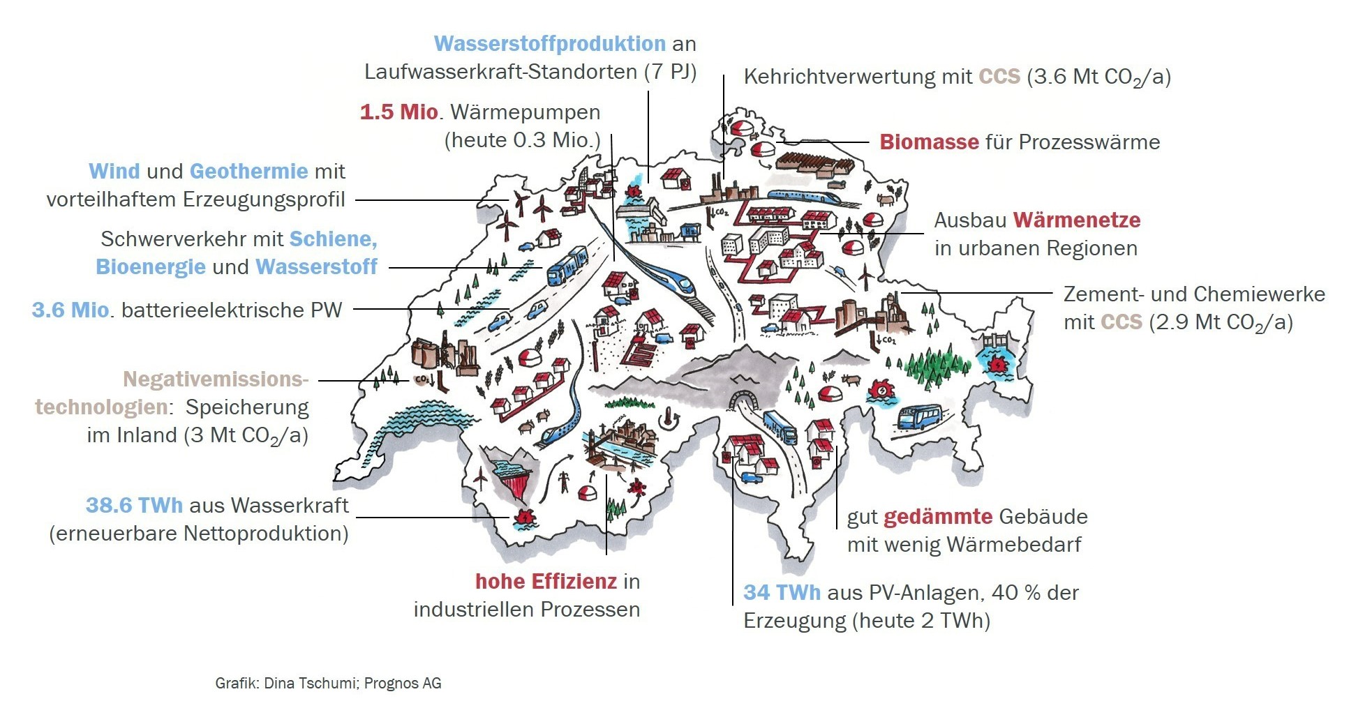 Mit den im Herbst 2020 veröffentlichten Energieperspektiven 2050+ zeigt das Bundesamt für Energie (BFE) insbesondere im folgenden Szenario, wie die Ziele der Klimaneutralität bis 2050 umgesetzt werden könnten: