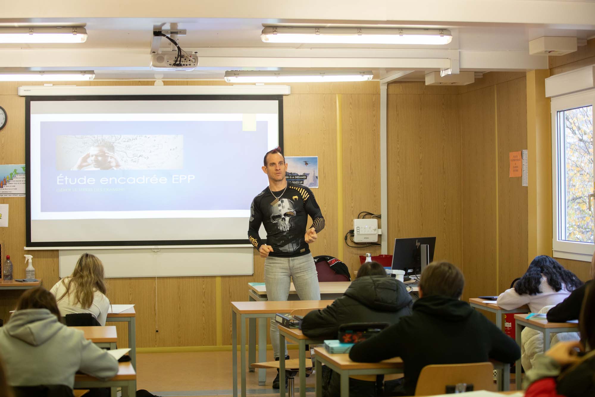 Sébastien Moret unterrichtet an der Handels- und Fachmittelschule (ECCG) und der Schule für Berufsvorbereitung (SfB) Sitten. Neben Französisch unterrichtet er auch das Fach BKU (berufskundlicher Unterricht). Wenn zwischendurch etwas Zeit bleibt, erzählt er den Jugendlichen zwischen 15 und 17 Jahren von seinen Erfahrungen in der Bodybuilding-Szene: «Die Story vom Slip enthält eine wichtige Message für die Kids. Indem ich etwas immer und immer wieder geübt habe, habe ich Fortschritte gemacht. Dieses Beispiel lässt sich auch auf die Arbeitswelt übertragen, wenn man sich beispielsweise auf ein Vorstellungsgespräch vorbereiten muss.»