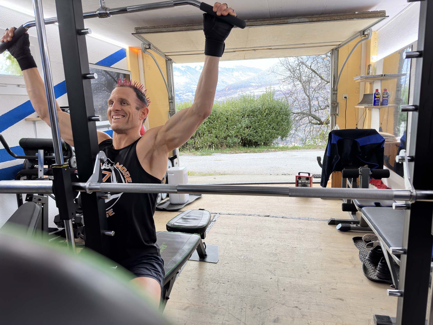 Um das Unmögliche möglich zu machen, setzt Sébastien alles auf eine Karte. Er hat ein Team von Profis um sich geschart, zu dem zwei Coaches, ein Mediziner, ein Osteopath und ein Masseur gehören. Daneben kann Moret auf die volle Unterstützung seiner Frau Dominique zählen. «Sie begleitet mich zu allen Wettkämpfen, gibt mir Feedbacks zu meinen Auftritten und kümmert sich um alles Logistische. Sie ist mit mir sogar bis nach Bordeaux gefahren. Sie ist unglaublich.» Um möglichst optimal trainieren zu können, hat sich Moret in einer Garage gleich neben seinem Haus einen eigenen Kraftraum eingerichtet, den er liebevoll als «die Schmiede» bezeichnet. Hier trainiert er täglich.