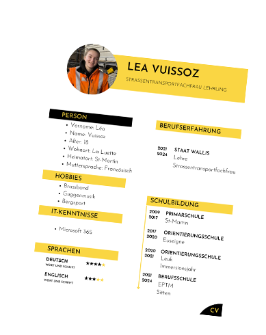 Lastwagen über alles. Léa Vuissoz hat ihre Leidenschaft zum Beruf gemacht und absolviert zurzeit eine Berufslehre als Strassentransportfachfrau EFZ. Seit 2021 gehört die junge Frau aus dem Val d’Hérens zum Team der Abteilung Transporte der Sektion Unterhaltslogistik der Kantonsstrassen und wird ihre Berufslehre im Juli 2024 abschliessen.