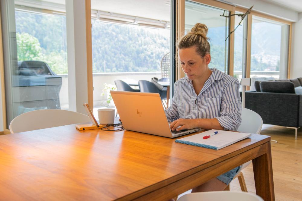 Während des Lockdowns hat auch mein Mann von zuhause aus gearbeitet und die beiden noch nicht schulpflichtigen Kinder waren aufgrund der geschlossenen Kindertagesstätten ebenfalls anwesend. Das war eine grosse Herausforderung. Mit ein bisschen Organisation hat das ständige Zusammensein aber gut geklappt. Ein eigenes Büro habe ich zuhause nicht eingerichtet. Da wir einen grossen Wohnbereich haben, arbeite ich oft vom Esstisch aus. Nachdem ich schliesslich einen passenden Stuhl gefunden habe, ist die Arbeit auch aus ergonomischer Sicht dort gut möglich. Ich ziehe es aber vor, von verschiedenen Standorten innerhalb der Wohnung aus zu arbeiten, das statische liegt mir weniger. Angezogen bin ich im Übrigen immer adäquat. Ganz genau so, als ob ich an meinen Arbeitsplatz gehen würde.»