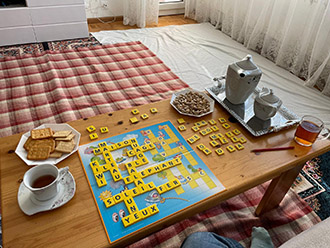 Wenn im Laden gerade wenig läuft, nutzen die Freiwilligen und die Migrantinnen die Zeit, eine Partie Scrabble zu spielen, über Gott und die Welt zu reden und so ihre Französischkenntnisse zu üben.