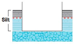 Bis zur Oberkante des Grundwasserleiters, an der Basis der siltigen Deckschicht.