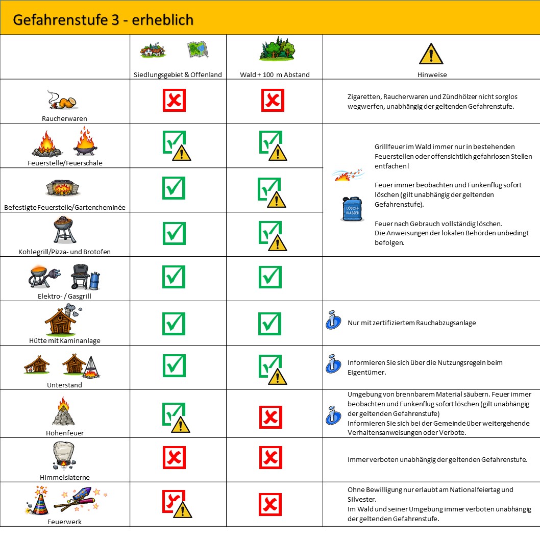 - Grillfeuer nur in bestehenden Feuerstellen entfachen.