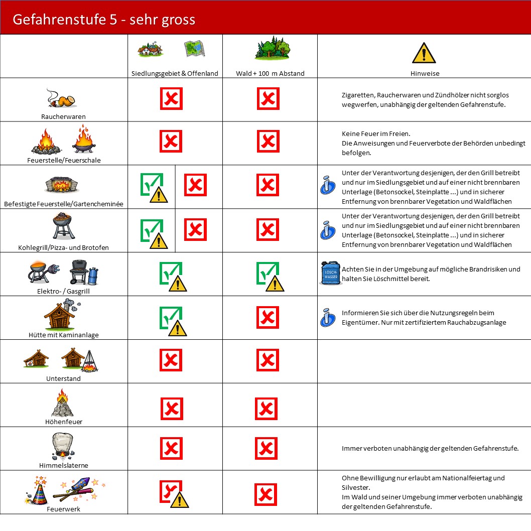 - Die Anweisungen und Feuerverbote der lokalen Behörden unbedingt befolgen!