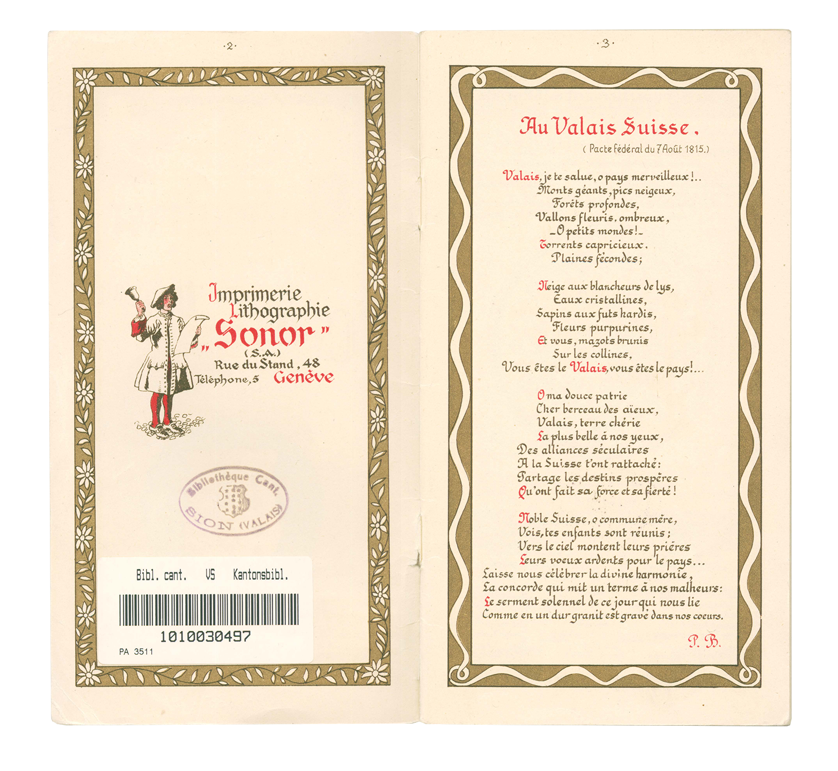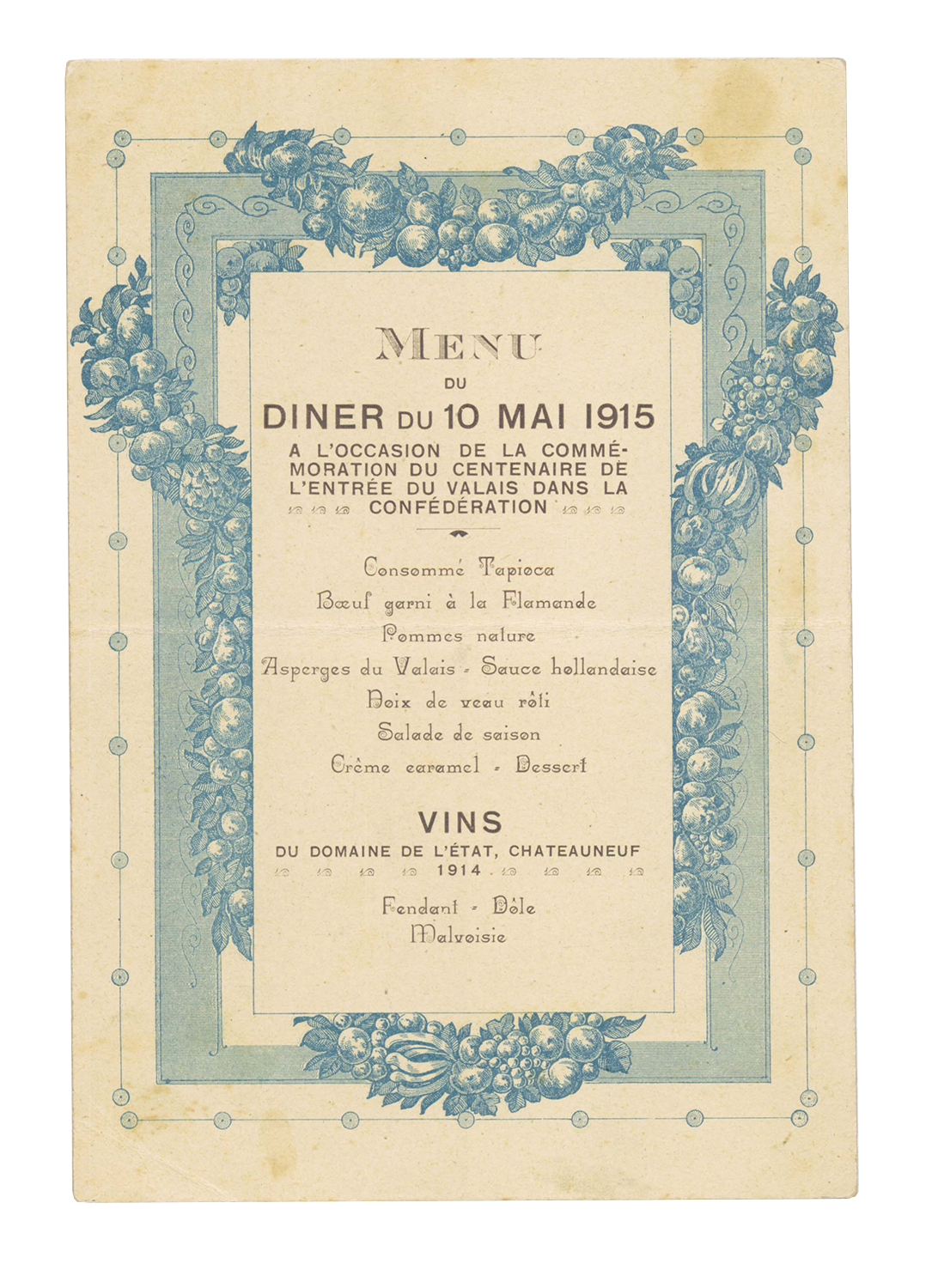 Titre : Carte commémorative du centenaire de l’entrée du Valais dans la Confédération
