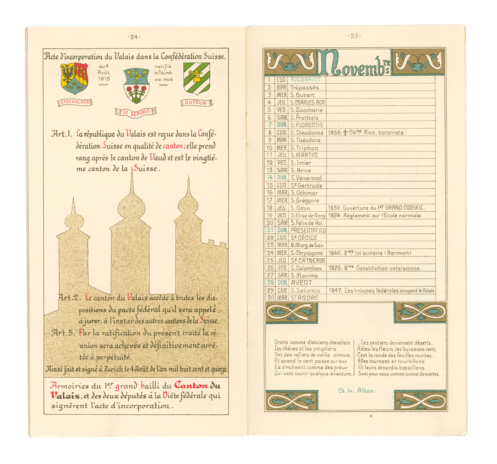Carte commémorative du centenaire de l’entrée du Valais dans la Confédération