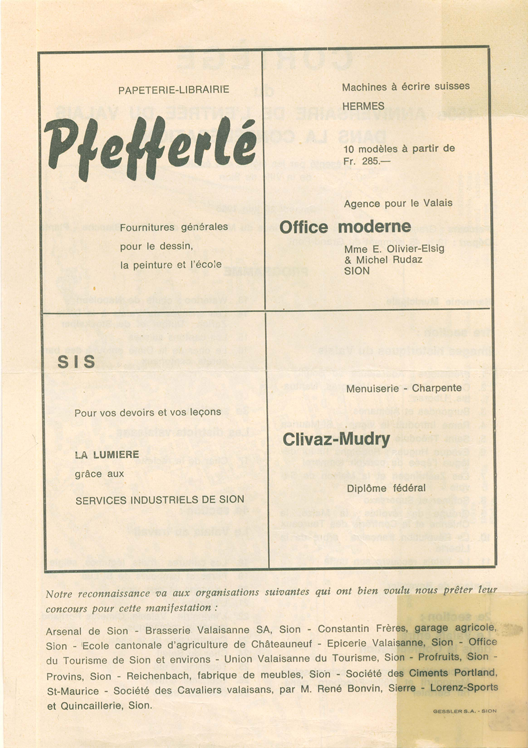 Brochures accompagnant diverses manifestations mises sur pied en 1990, ainsi que l’ouvrage Le Valais et vous / Das Wallis und Sie qui, grâce à l'apport d’une Enquête photographique organisée à l’échelle cantonale, propose un regard original sur le Valais, les Valaisannes et les Valaisans.