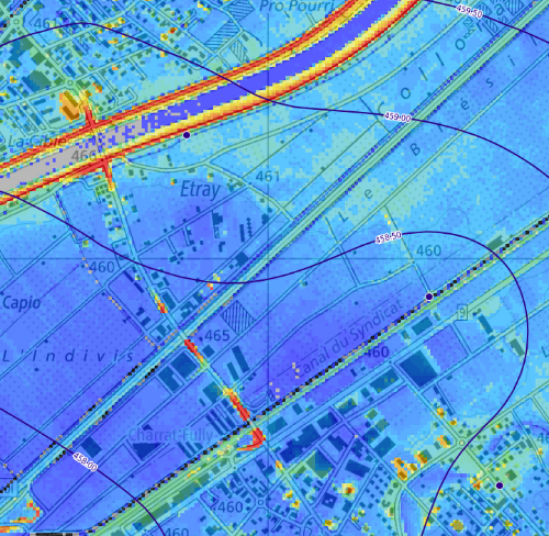 Par des méthodes géostatistiques, la surface de la nappe phréatique (piézométrie) ou sa profondeur sous le terrain naturel (épaisseur de la zone non saturée) peuvent être représentées sous forme cartographique. Ces produits dérivés sont issus d’une interpolation spatiale des données mesurées aux différentes stations du réseau de surveillance cantonal.