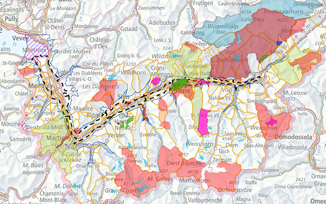 Les géodonnées concernent toutes les données enrichies permettant la localisation géographique de l'information sur le territoire valaisan.