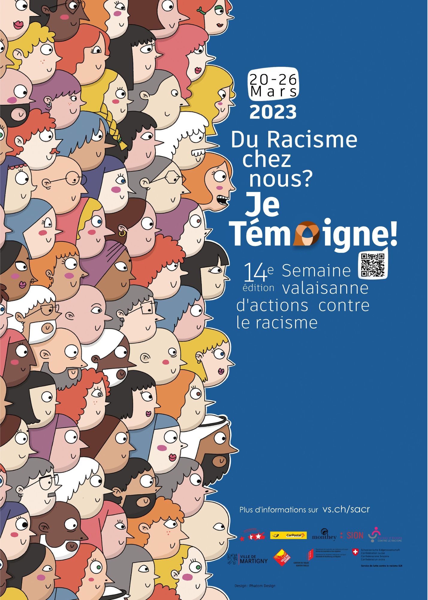 Un recensement de témoignages de personnes concernées par le racisme et la discrimination raciale est mené par Bureau d’écoute contre le racisme de la Croix-Rouge Valais dans tout le canton jusqu'à l'automne. Le projet veut mettre en lumière l’expérience du racisme du point de vue des personnes discriminées, de leurs proches ou de témoins, et leur donne l’opportunité de rendre visible leur vécu. Les témoignages collectés seront traités par un groupe de travail soumis au devoir de confidentialité. Une fois rendus anonymes, les témoignages seront utilisés dans le cadre de récits fictifs ou à des fins statistiques. Une synthèse est prévue en mars 2024, lors de la prochaine édition de la Semaine d’actions contre le racisme.