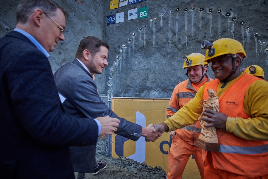 Der Vortrieb am neuen Tunnel der Pyramiden von Euseigne ist abgeschlossen. Aus diesem Anlass fand eine Feier statt, an welcher der Vorsteher des Departements für Mobilität, Raumentwicklung und Umwelt, Franz Ruppen, der Präsident der Gemeinde Hérémence, Gregory Logean, die Unternehmen sowie die Baufachleute teilnahmen. Der 120 Meter lange Stollen wurde dank der sogenannten Schirmgewölbemethode, die gewählt wurde, um die Erschütterungen auf ein Minimum zu beschränken, ohne besondere Schwierigkeiten ausgebrochen. Die während des Tunnelvortriebs getroffenen Sicherheitsvorkehrungen haben demnach ein Hinunterfallen der schwarzen Blöcke, die die Pyramiden krönen, verhindert. Nun können die Betonarbeiten für die Innenverkleidung des Bauwerks und die beiden Portale beginnen.