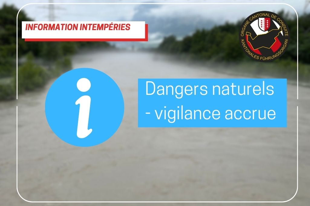 En ce qui concerne le Rhône, une hausse de son débit est attendue à partir de la nuit de mercredi à jeudi. Pour cette raison, l’Organe cantonal de conduite a émis une pré-alerte pour le fleuve, ce qui implique que les états-majors de conduite concernés se préparent à effectuer une surveillance active des digues.