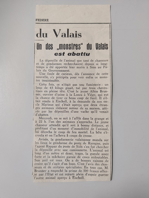 Während der Wolf in den letzten Wochen und Monaten erneut für Furore gesorgt hat, ist es nicht neu, dass in unseren Breitengraden Monster ihr Unwesen treiben. Nach dem Zweiten Weltkrieg trat im Kanton Wallis ein «Untier» auf, wobei in der Presse abwechslungsweise von einem Luchs, einer Pantherfamilie oder gar einem «Tibetanischen Tiger» die Rede war.