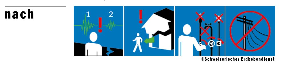 - Vorsicht bei Verlassen der Gebäude (Einsturzgefahr und herunterfallende Gegenstände)
