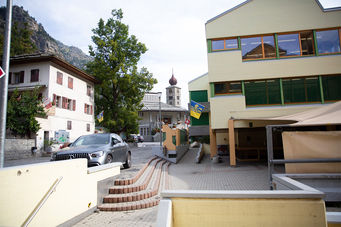 Cependant, à peine sortis du lieu de rendez-vous, en face de l’école régionale, l’histoire de l’usine s’impose à nous. Avant d’accueillir l’école, l’emplacement était réservé au premier bâtiment de Scintilla à Saint-Nicolas. Et voici que Stefan Truffer et Roger Imboden deviennent intarissables sur l’histoire de leur village. C'est là que tout a commencé, après la guerre, quand la société soleuroise cherchait des ouvriers pour fabriquer ses outils électriques. Grâce à la rencontre entre le maire de l'époque, Rudolf Bittel, et les dirigeants de Scintilla, une opportunité s'est offerte aux habitants de Saint-Nicolas, qui vivaient dans la précarité et le manque de perspectives. L'hôtel a été transformé en atelier et les montagnards ont appris un nouveau métier. Ainsi est née une collaboration fructueuse entre l’usine de Bosch et Saint-Nicolas, qui dure encore aujourd’hui.