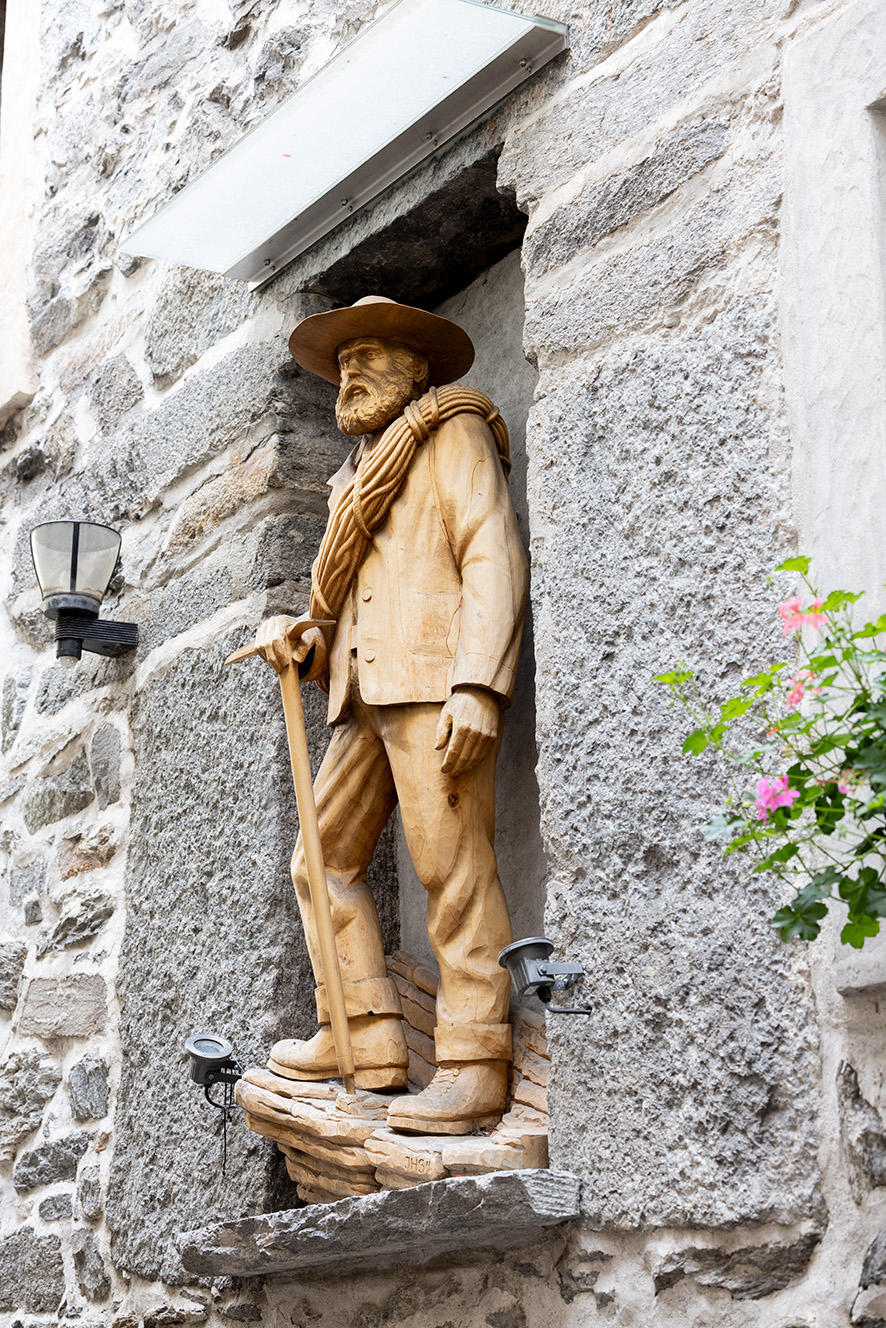 Tanja Fux, quant à elle, est particulièrement passionnée par l'histoire de l'alpinisme à Saint-Nicolas. Née un peu plus haut dans la vallée, à Täsch, elle raconte avec enthousiasme les exploits des guides de Saint-Nicolas qui ont marqué leur époque par leurs ascensions audacieuses et pionnières. Parmi eux, Alois Pollinger, qui a gravi pour la première fois l'arête du Vieresel de la Dent Blanche, Josef Lochmatter, qui a ouvert la voie sur la face sud du Täschhorn, Josef Knubel, qui a réalisé la première de la face nord de l'Eiger par la voie Lauper, et Peter Knubel, qui a conquis le sommet de l'Elbrouz. Tanja Fux admire ces alpinistes qui ont fait connaître Saint-Nicolas au monde entier et qui ont contribué à l'essor de cette discipline sportive et culturelle.