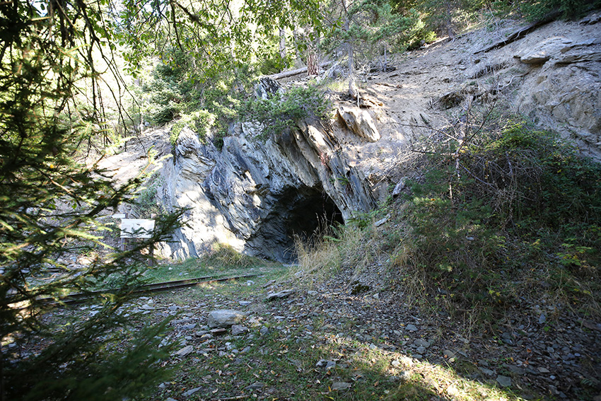 Changement de décor. Nous quittons l’air libre pour explorer les profondeurs du Mont Chemin. Lampes frontales enclenchées, Bernard nous conduit à l’intérieur d’une galerie artificielle. « Il s’agit de la mine Hubacher. L’ouvrage mesure 430 mètres de long. C’est l’une des dernières mines de la région à avoir connu une activité », précise notre guide. La galerie de prospection a été creusée dans les années 1970. Elle a révélé un gisement de plus de 150'000 tonnes de fluorine, un minerai indispensable à l’industrie de l’aluminium et à la sidérurgie. Hélas, la chute du cours de la fluorine a réduit à néant le projet d’exploiter la ressource. Nous nous enfonçons un peu plus dans la mine abandonnée. Un burin pneumatique coincé dans la roche et les vestiges d’une voie ferrée témoignent des moyens engagés à cette époque. « C’est un élément remarquable de notre région, à préserver coûte que coûte. C'est juste un truc absolument incroyable », s’enthousiasme Bernard.
