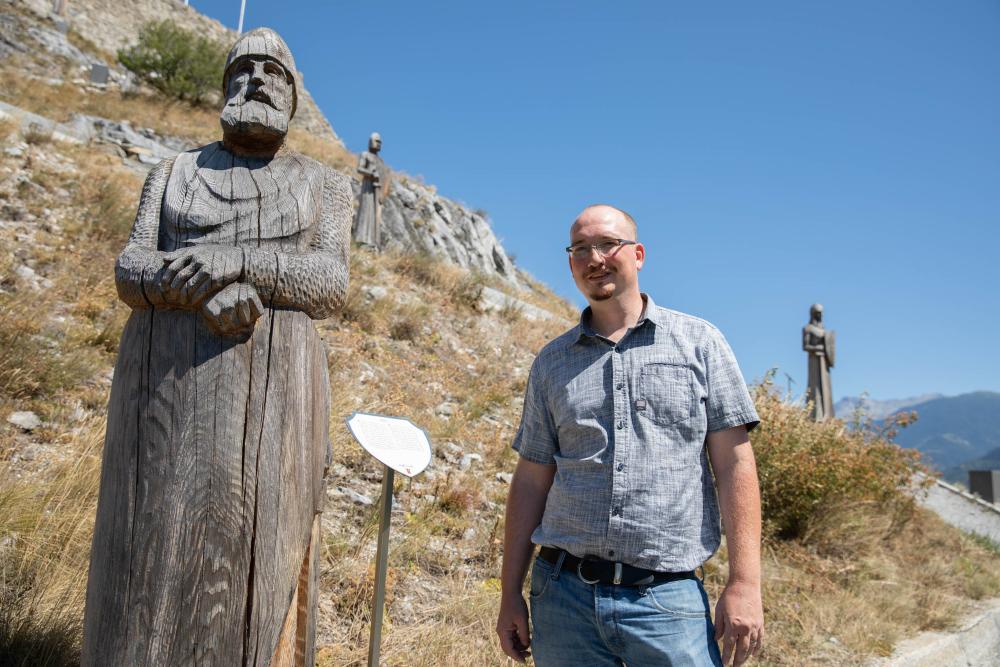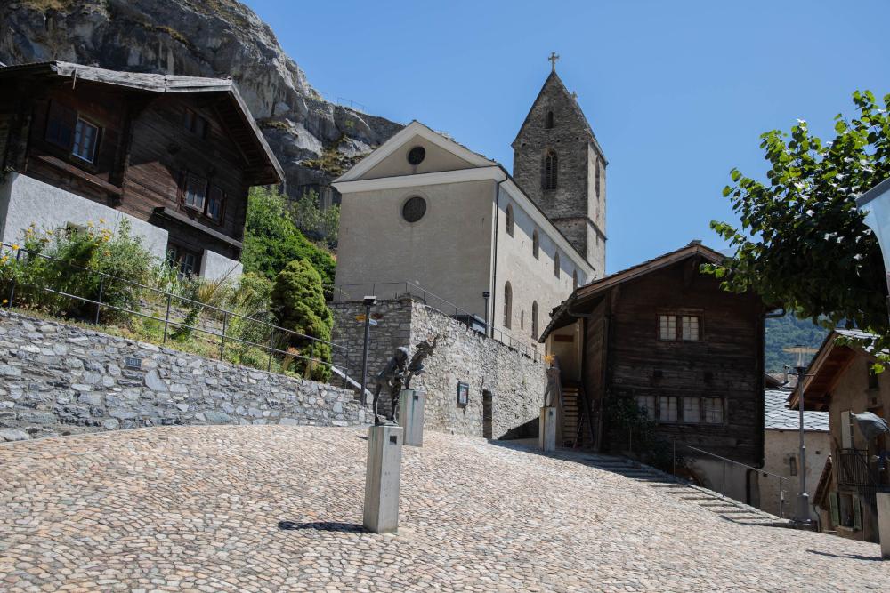 Pour partir à la découverte de Niedergesteln, il faut une bonne paire de chaussures. Philipp Theler a grandi dans ce petit village, qui compte environ 700 habitants. Aujourd’hui, il nous guide à travers ce bel endroit, en commençant par le chemin des Chevaliers, en direction des ruines du château de Gesteln. Neuf statues en bois, en grandeur nature, jalonnent le sentier et racontent l’histoire des chevaliers de la famille von Turn. Ces derniers, qui ont bâti le château au XIIe siècle, ont façonné l’histoire du Haut-Valais au Moyen Age. « Depuis ici, on a une vue magnifique sur la vallée du Rhône », explique Philipp Theler, qui travaille comme chef de chantier au Service de la mobilité, à Brigue. « Petit, je venais souvent ici, surtout le 1er août, pour admirer les feux d’artifice des communes voisines.» A l’intérieur du rocher, on trouve une grotte éclairée et accessible qui date de la période glaciaire et que l’on appelle le « Feschtiloch » (« grotte de fête »).