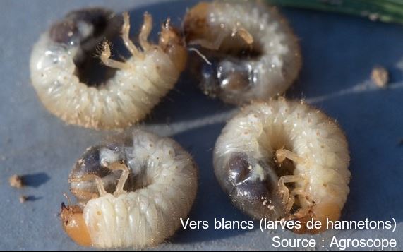 En Suisse, on distingue quatre espèces de hannetons indigènes pouvant causer des dégâts :