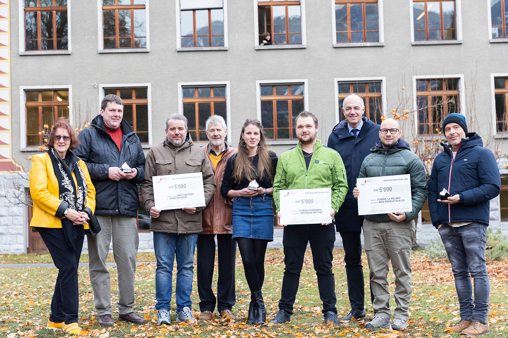La cérémonie de remise des mérites agricoles 2023 a eu lieu à l’Ecole d’agriculture du Valais à Châteauneuf en présence des lauréats : la cave Chanton de Viège, l’agricultrice Stéphanie Mottiez de Saint-Maurice ainsi que les créateurs de l’application mon-producteur.ch basée à Martigny. Ces derniers se sont vus remettre un trophée, une vidéo promotionnelle ainsi qu’un montant de 5000 francs à attribuer à une personne, un projet ou un groupement novateur ou actif au niveau de la relève agricole.