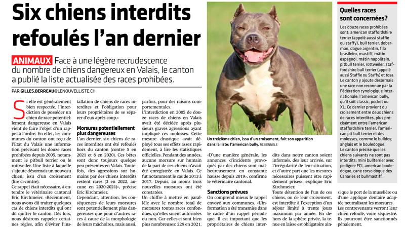 24.04.2024 | Le Nouvelliste | Attaques de chiens en hausse
