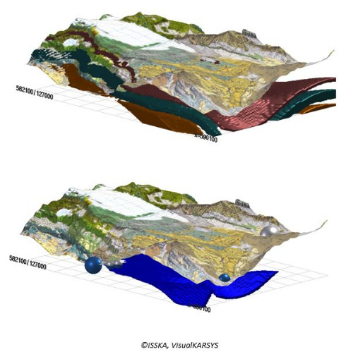 Das Projekt KARSYS-VS wurde von der DUW im Jahr 2014 in enger Zusammenarbeit mit dem Schweizerischen Institut für Speläologie und Karstforschung (SISKA) initiiert. Seine Entwicklung wird derzeit fortgesetzt. KARSYS ist eine wissenschaftliche Methode zur systematischen Charakterisierung von Karstgrundwasserleitern. Die hydrogeologischen Grundlagedaten werden in konzeptuellen Regionalmodellen integriert, die es ermöglichen, die Fliessrichtungen und die Entwicklung der Grundwasservorkommen zu bestimmen.