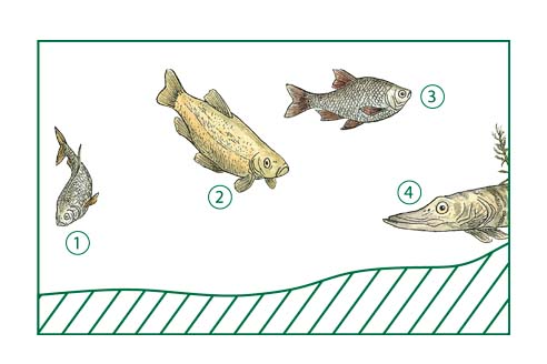 Plus d'une dizaine d'espèces de poissons cohabitent dans les eaux du lac : chevaine, carpe, gardon1, tanche2 ablette, perche, rotengle3, brochet4, truite fario, truite arc-en-ciel, vairon, etc. Toutes ces espèces ont été introduites par l'homme à un moment ou à un autre dans ce lac de gravière.
