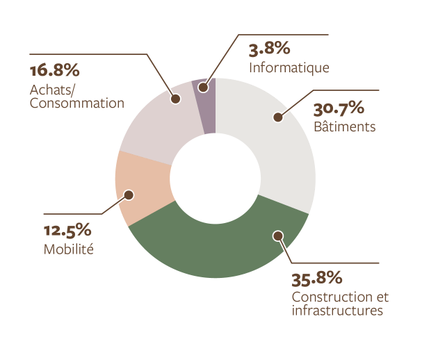 Les travaux liés aux bâtiments et aux infrastructures routières constituent de loin les principaux postes d’émissions, représentant à eux seuls plus de 60% du total.