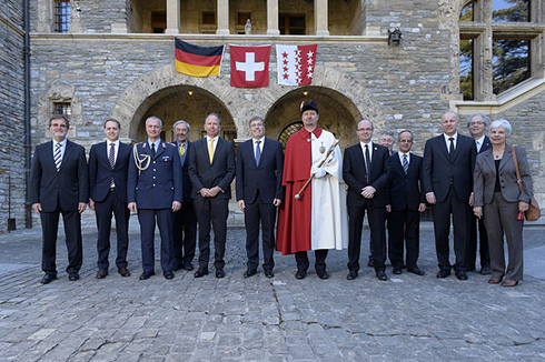 In seiner Begrüssungsrede zeigte sich der Regierungspräsident erfreut seinen Gast im Château Mercier in Siders unter dem  Zeichen einer freundschaftlichen Beziehung zwischen Deutschland und Wallis empfangen zu können. Mit 13% Anteil an der Landesfläche ist das Wallis flächenmässig einer der grössten der 26 Schweizer Kantone, weist allerdings mit rund 330'000 Einwohnern eine relativ geringe Bevölkerungsdichte auf. Das Wallis ist wohl ein gebirgiger, trockener und sonniger Kanton und dennoch oder gerade deswegen befindet sich hier der grösste, wenn nicht auch beste Weinberg der Schweiz. Unsere Weinproduktion umfasst mehr als 50 Spezialitäten. Der Tourismus ist der stärkste Wirtschaftszweig. Die deutschen Gäste sind unsere wichtigsten Kunden aus dem europäischen Raum. Das Wallis ist Natur und Kontrast. Die Schönheit seiner Landschaft und der Reichtum seines Terroir machen aus ihm eine Wunschdestination vieler Reisender.