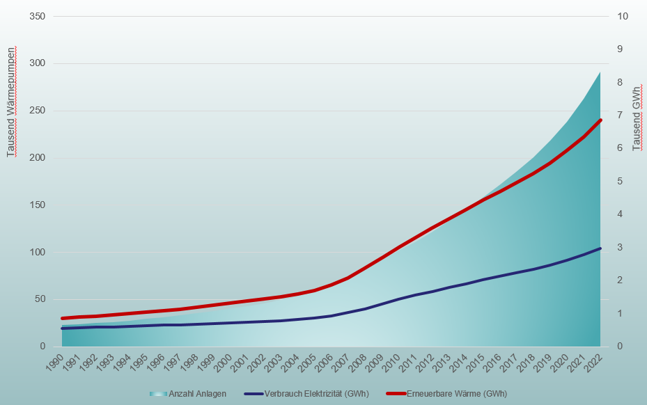 Im Bereich der erneuerbaren Energien stellen Wärmepumpen (WP) eine Schlüsseltechnologie dar, die der Bund ausbauen will, um den Verbrauch fossiler Energieträger in Heizungen zu senken. Die folgende Grafik zeigt, dass erneuerbare Energien - im Vergleich zu anderen Primärenergieträgern - nur einen sehr geringen Anteil am Endenergieverbrauch der Schweiz ausmachen (fuchsiafarbe).