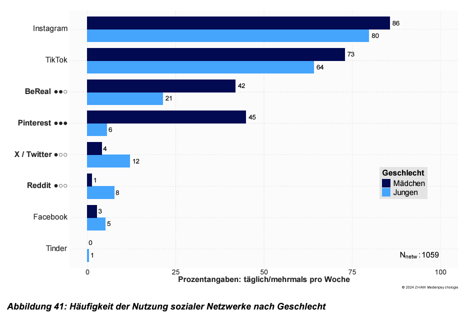 Dies spiegelt sich bei der Wahl der sozialen Netzwerke durch Jugendliche zwischen 12 und 18 Jahren wider.