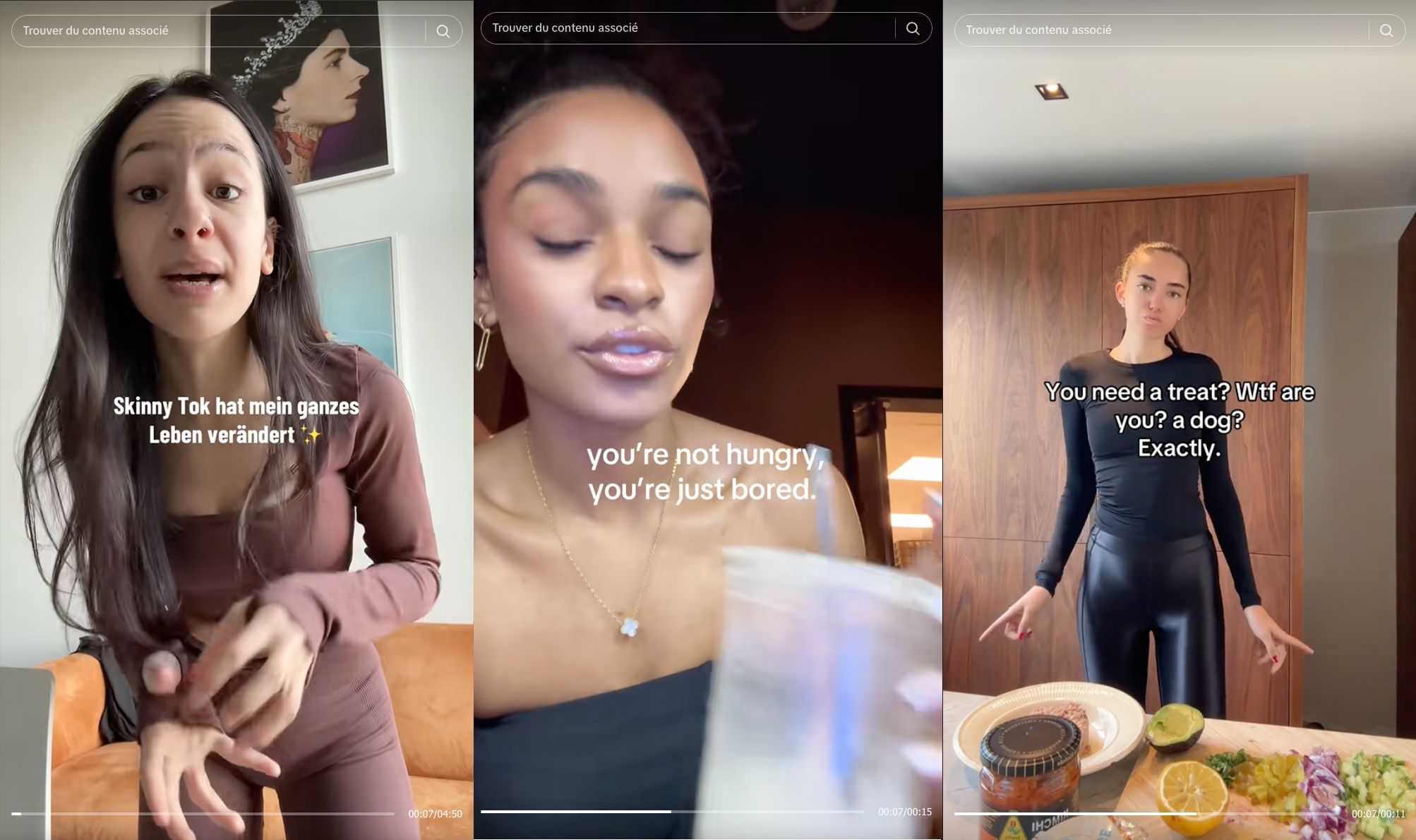 SkinnyTok wirkt nicht wie eine der herkömmlichen Challenges, sondern beeinflusst Jugendliche unauffällig durch regelmässige Nachrichten und Videos im persönlichen Feed. So entsteht eine Lebenswelt, in der dünn sein verherrlicht wird und in der regelmässig gefährliche Tipps verbreitet werden.