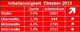 Die Lage auf dem Walliser Arbeitsmarkt im Oktober