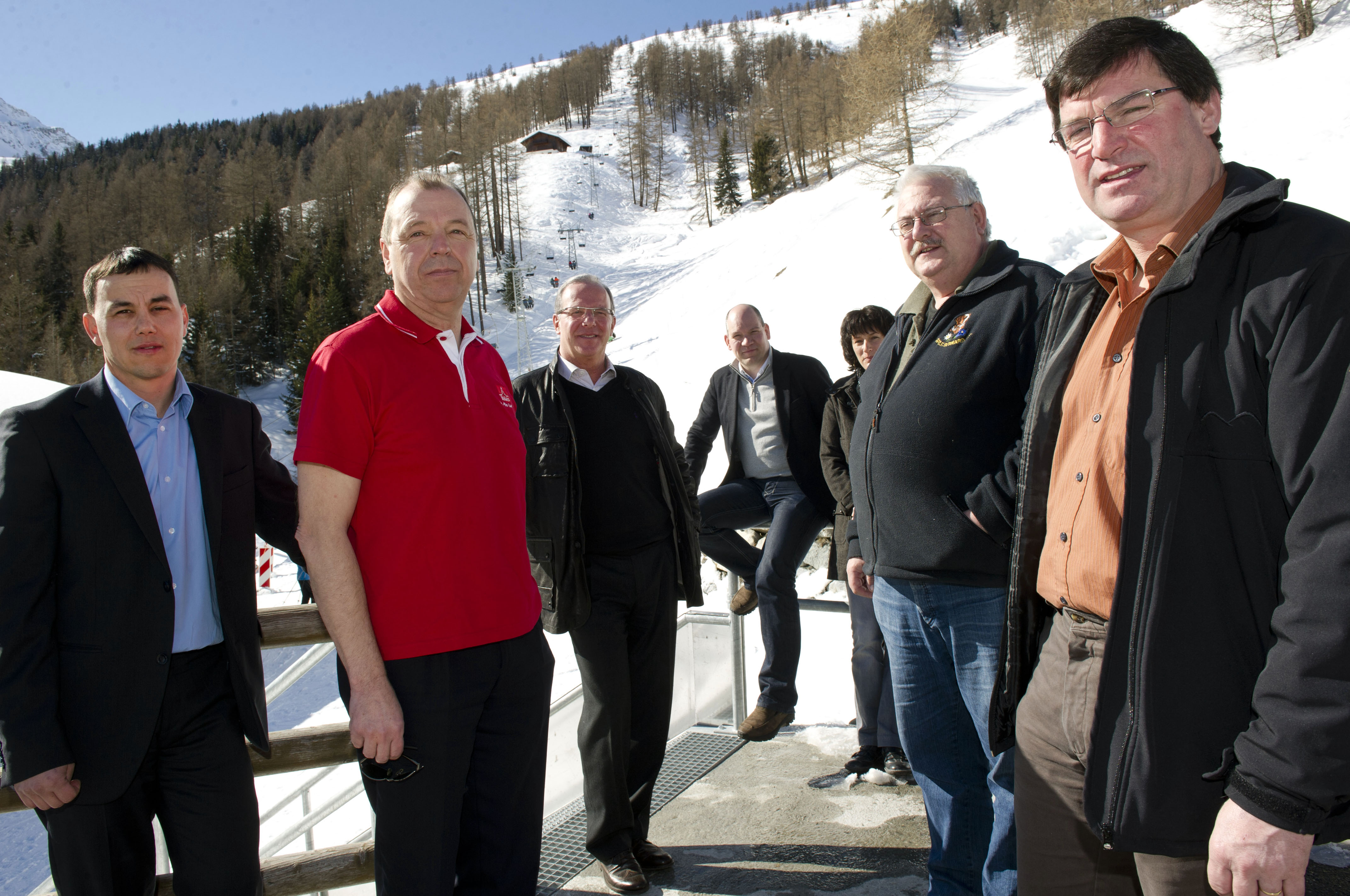 Vichères mit Maurice Tornay Patrice Michaud, Präsident der Seilbahnen Vichères-Liddes, Staatsrat Maurice Tornay, Bernard Monnet, Präfekt des Bezirks Martinach, Jean-Albert Ferrez, Grossratspräsident von Verbier, Miguelle Darbellay, Gemeinderätin von Liddes, Gilbert Tornare, Präsident von Bourg-St-Pierre, Jean-Laurent Darbellay, Präsident von Liddes