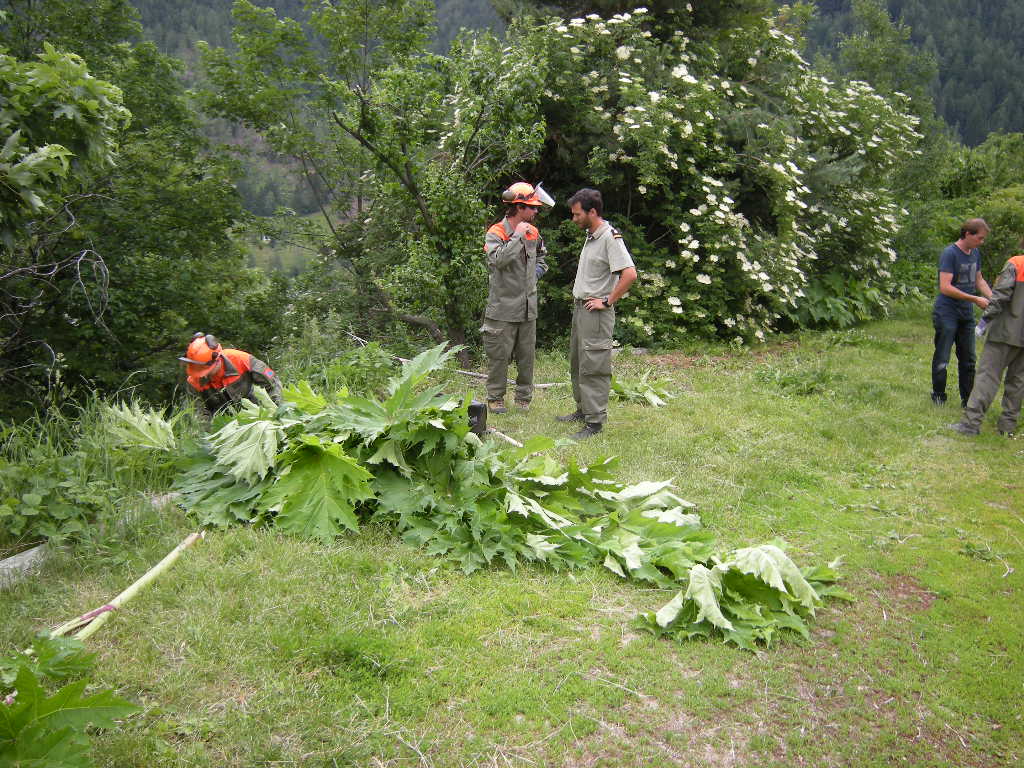 (IVS).- Diesen Sommer führen die Dienststelle für Wald und Landschaft und das kantonale Amt für Zivilschutz der Dienststelle für zivile Sicherheit und Militär Kampfmassnahmen gegen den Riesenbärenklau und das Drüsige Springkraut durch. Diese beiden gebietsfremden invasiven Pflanzenarten wuchern entlang von Strassen- und Uferböschungen und verursachen so Mehrkosten im Unterhalt. Der Riesenbärenklau verursacht zudem gesundheitliche Probleme.