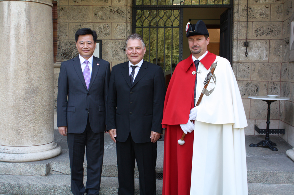 Der chinesische Botschafter seinerseits wies auf die langen freundschaftlichen Beziehungen zwischen der Schweiz und China hin, deren Anfang ins Jahr 1950 reicht. Die Schweiz war eines der ersten Länder Europas, welches diplomatische Beziehungen mit der neuen Volksrepublik China pflegte. Er erwähnte die wichtigen Wirtschaftsbeziehungen (mehr als 20 Milliarden Dollar im Jahr 2010) und die grosse Anzahl chinesischer Feriengäste in der Schweiz. Er zeigte sich begeistert, ob der Schönheit der Walliser Landschaft, die er zum ersten Mal sah.
