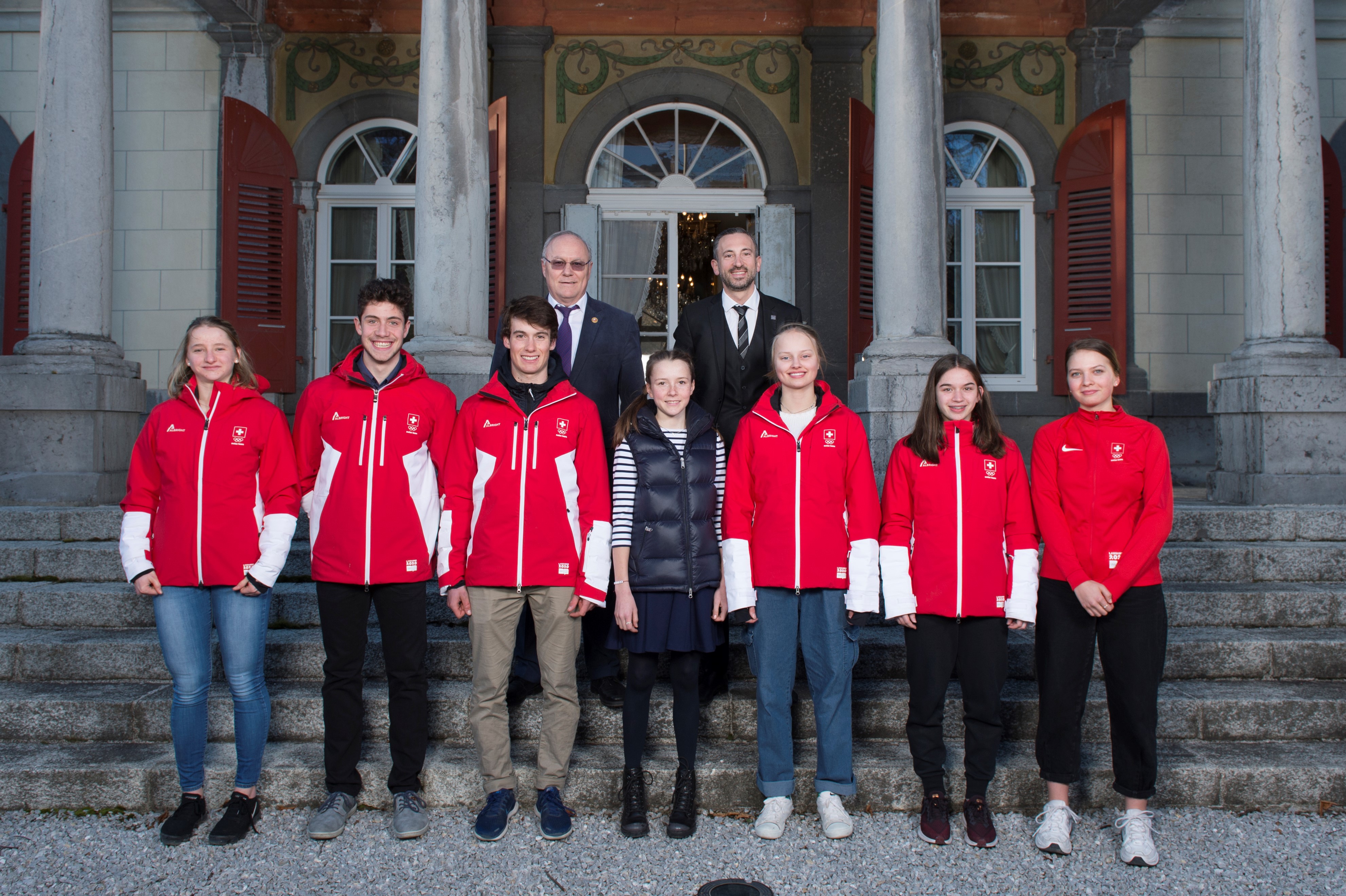 Alizée Aymon, Leni Michellod, Luc Roduit, Aurélie Sainz, Elsa Sjöstedt, Livio Summermatter, Alexia Turunen, Loris Uberti und Lena Volken wurden von Frédéric Favre, dem für Sicherheit, Institutionen und Sport zuständigen Staatsrat, und von Gilles Martin, dem Präsident des Grossen Rates in der Villa de Riedmatten in Sitten begrüsst. Die beiden Letztgenannten beglückwünschten die Athleten zu ihren Resultaten und lobten die positive Botschaft, die sie mit ihrem Engagement der gesamten Walliser Bevölkerung vermittelt haben.