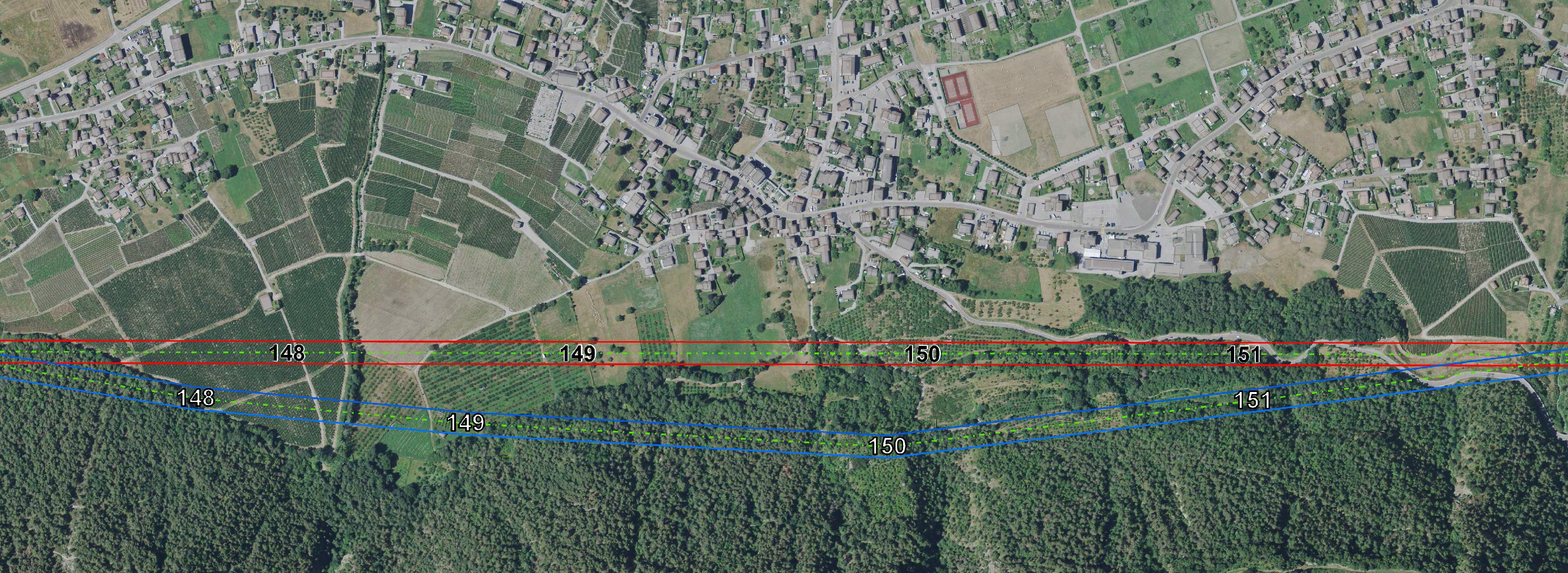 Diese Vorstudie beinhaltete eine Untersuchung der geologischen und topographischen Daten und eine Analyse der Naturgefahren (Felsstürze, Erdrutsche, Hangrutschungen, Überschwemmungen usw.). Im Vergleich zur bewilligten Linienführung würde eine Verschiebung der vier Masten sie zwar von der Murganggefahr wegbringen, sie aber stärker der Gefahr von Steinschlag und Erdrutschen sowie der Einsturzgefahr aussetzen. Die Studie zeigt jedoch, dass die Verschiebung technisch machbar ist.