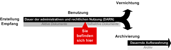 Sobald eine Tätigkeit oder ein Geschäft beendet ist, wird das dazugehörige Dossier abgeschlossen. Die abgeschlossenen Dossiers werden anschliessend für eine mehr oder weniger lange Dauer aufbewahrt und dann entweder vernichtet oder archiviert. Die darin enthaltenen Dokumente gelten als halbaktiv, oder anders gesagt, sie werden von den Mitarbeitern für ihre tägliche Arbeit nicht mehr häufig benutzt, können aber noch aus administrativen oder rechtlichen Gründen eingesetzt werden.