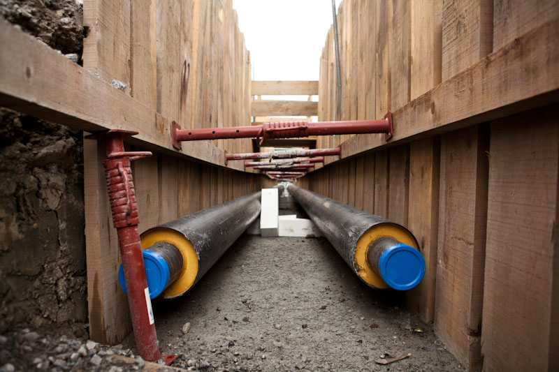 Ein Fernwärmenetz kann Warm- oder Kaltwasser sowie Dampf verteilen.