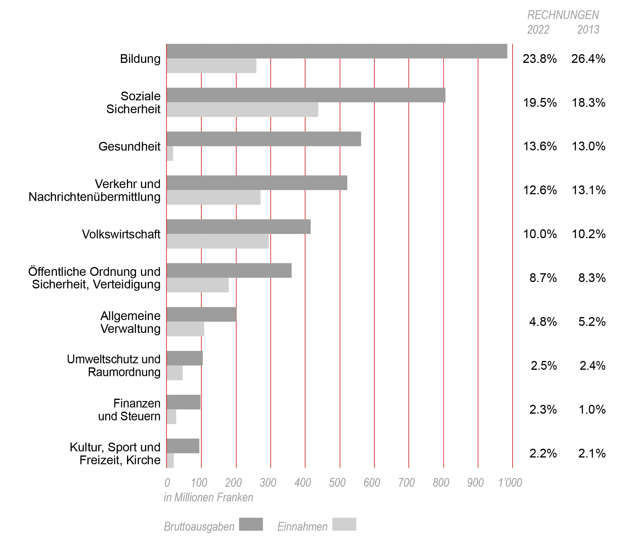 | in Millionen Franken, ohne die internen Verrechnungen | RECHNUNG 2021 | BUDGET 2022 | RECHNUNG 2022 |