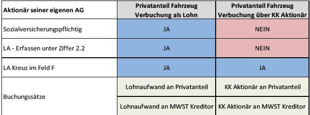 Nur im Falle des Aktionärs seiner Gesellschaft, da es sich um eine geldwerte Leistung (Gewinnausschüttung) handelt und daher als Vermögensertrag angesehen wird. Andererseits sind bei allen Steuerpflichtigen, die in einem Beschäftigungsverhältnis zum Arbeitgeber stehen, diese Privatanteile gemäss Ziffer 2.2 des Lohnausweises sozialversicherungspflichtig.